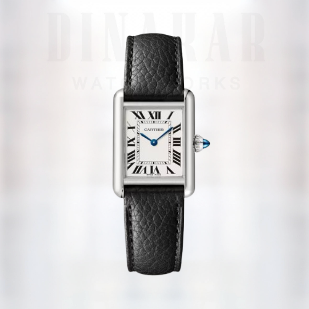 Cartier Tank Must Small, Steel on Leather, White Dial