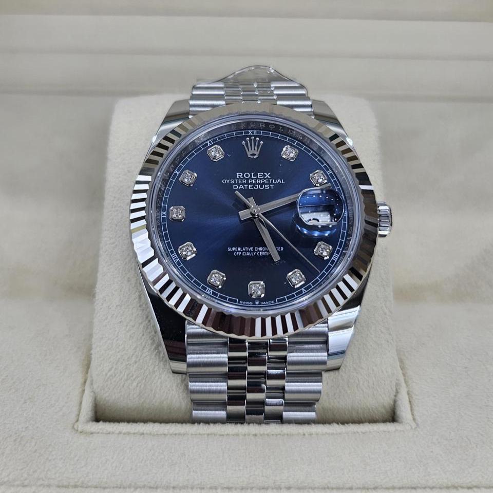 Rolex Datejust 41, Oystersteel and White Gold, Bright blue dial set with diamonds