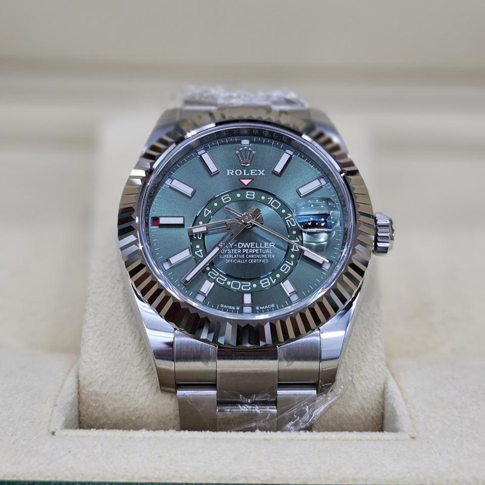 Rolex Sky-Dweller, Oystersteel and White Gold, Mint Green dial