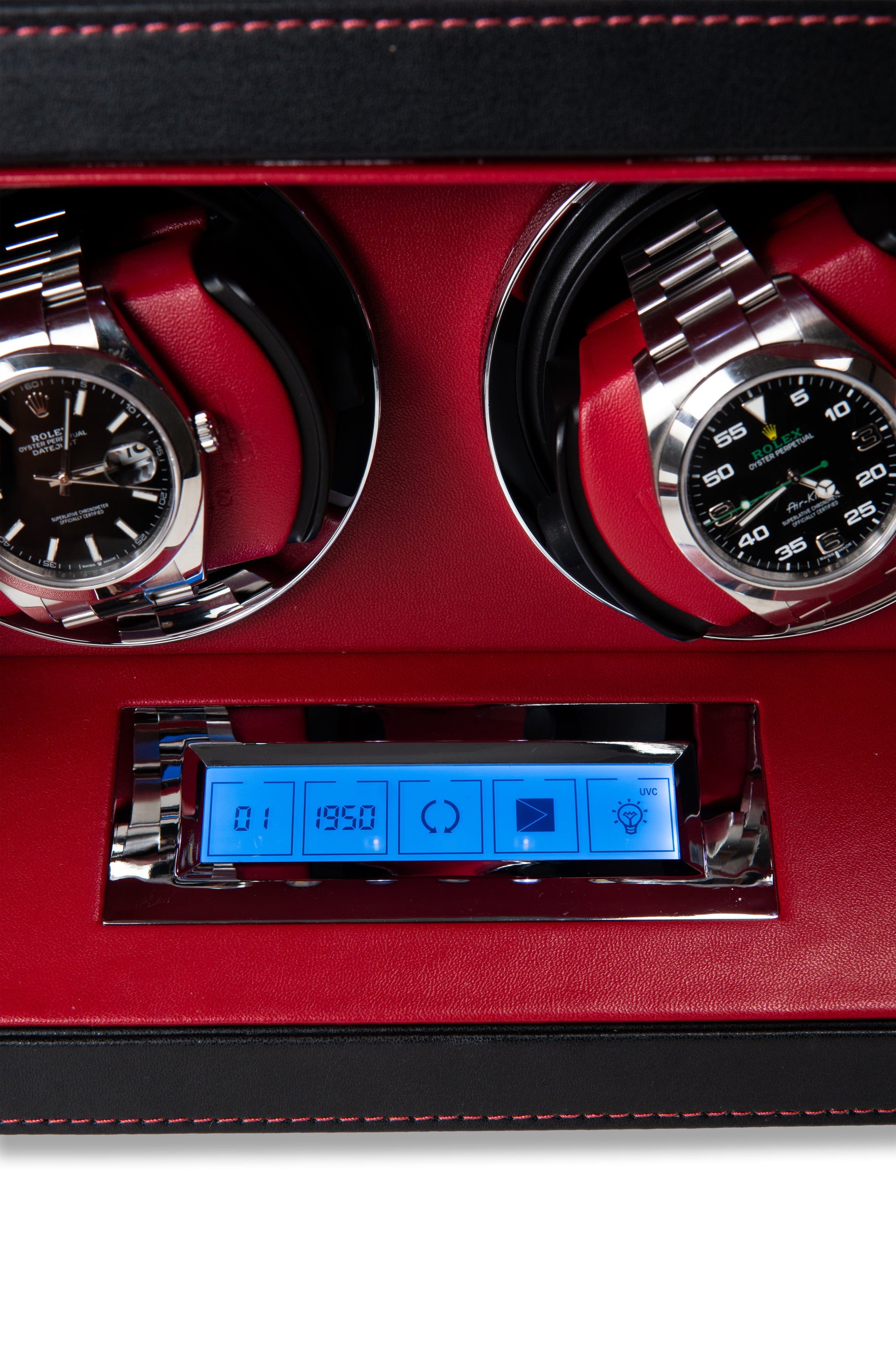 Crafted for collectors, this 2-slot automatic watch winder is designed for the secure storage and maintenance of high-end timepieces. Constructed with a wood frame and wrapped in high-grade microfiber leather, this unit combines durability with refined presentation.